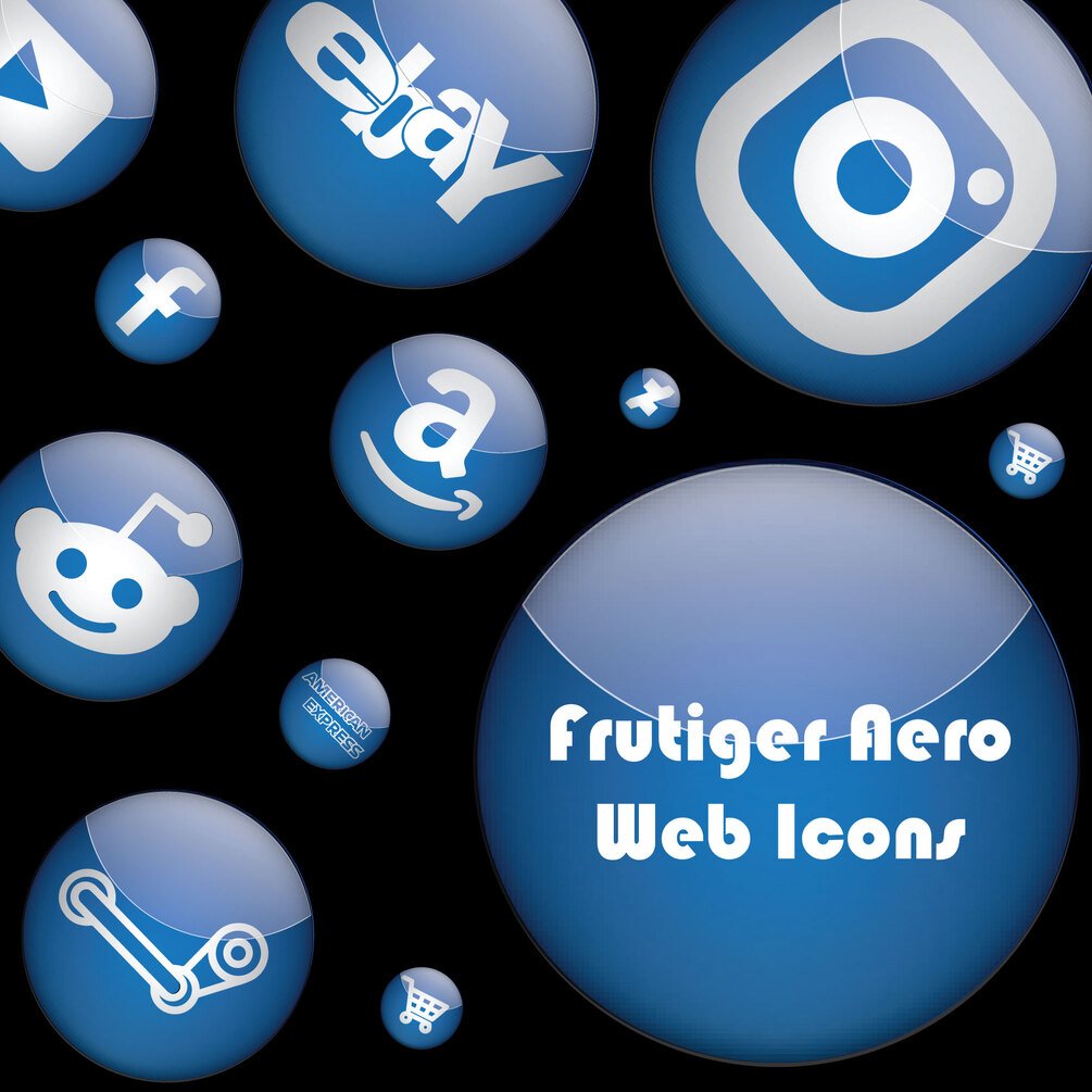 Glossy Frutiger Aero themed web and social media icons. Comes with default blue colored png and svg files as well as Illustrator and Photoshop files for easily creating new color variants of the icons.